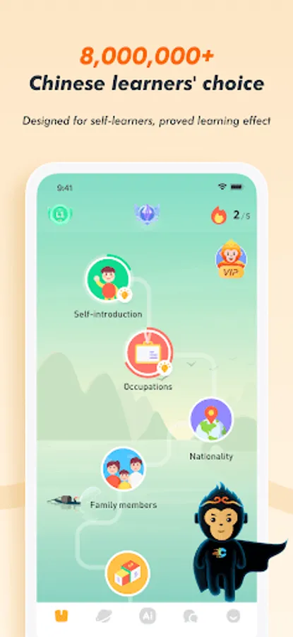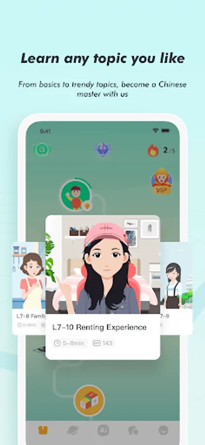 Enjoy over 400 Lessons, split into 9 Chinese levels and based on more than 50 interesting themes. Remember effortlessly through AI powered spaced repetition. Learn Chinese systematically, from basic Chinese to advanced Chinese, we have the right content for all Chinese language learners.