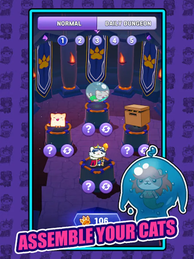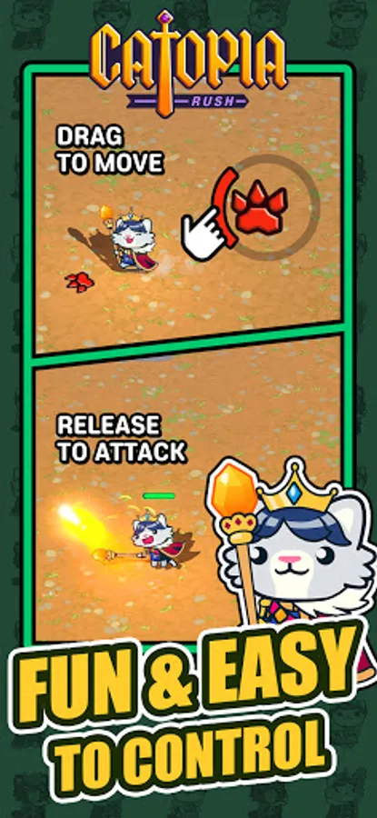 Move and attack with your cats with simple controls! Unleash powerful attacks at the edge of your fingertips. Control your Hero cat and watch as your allies fight beside you.