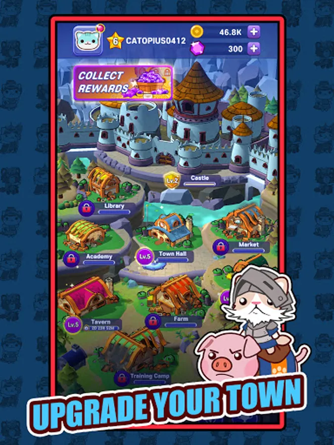 Let your village buildings gather materials while you're away! Use those materials to make your cat team stronger without grinding. Restore Catopia to glory!