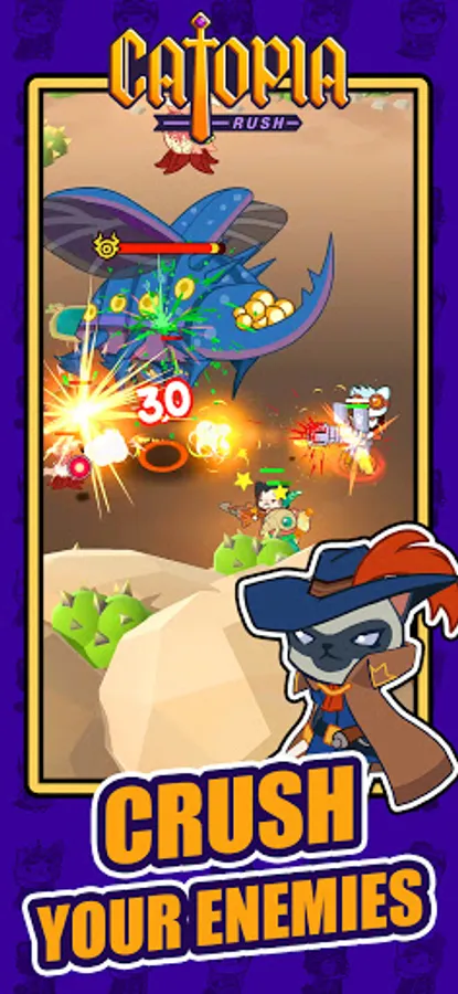 Catopia: Rush drops players into a fantasy world filled with monsters and dungeons. You lead a raid party of heroic cats, each with their own unique roles and skills. Launch arrows from your bow or blast bolts of fire magic with super easy, one-handed controls. Simply stop to shoot, and move to dodge as your team follows you! Anyone can play but mastery is encouraged through optional harder difficulties.