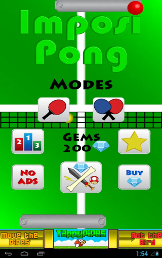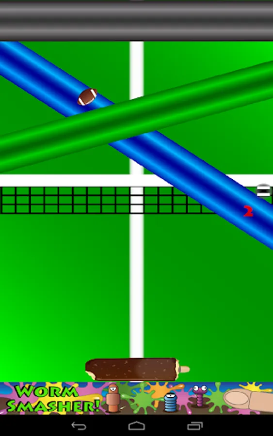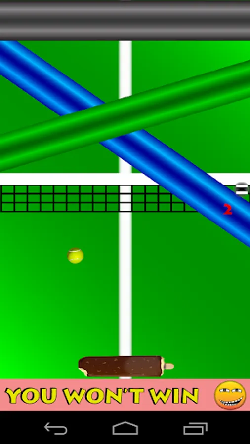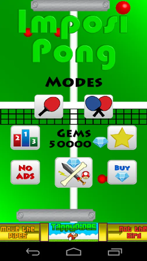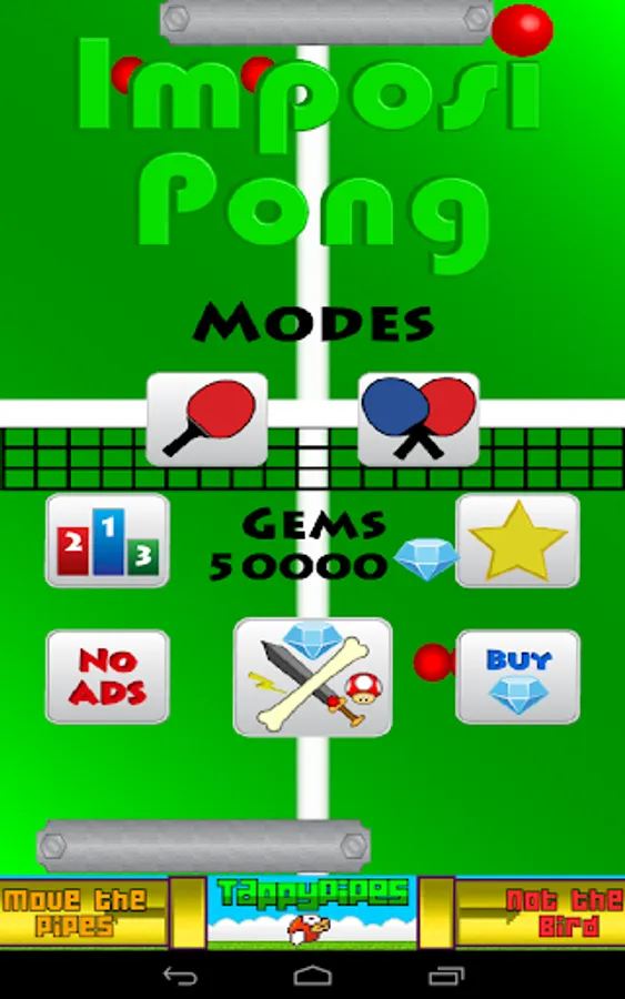 ImposiPong 2 player mode where both the second and first players can select custom pong paddles. In this mode each player controls their paddle by touching their half of the device.