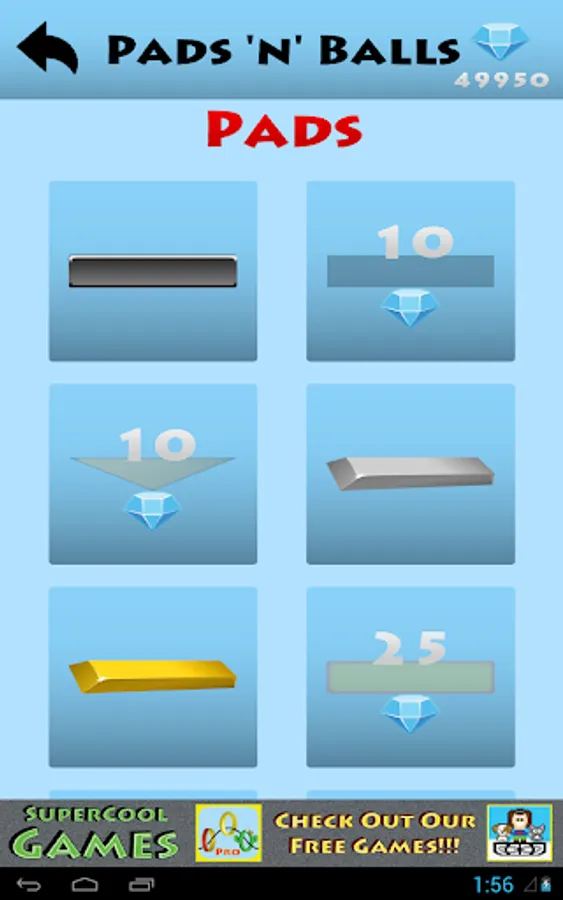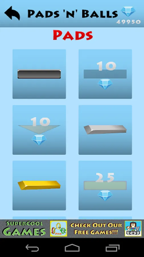 You start with a bunch of lives and each time you miss a ball, you lose one. Every time a ball doubles you can also gain lives. As you play you earn gems which you can use to by sweet new custom balls or paddles. You can also buy power ups for your next game.
