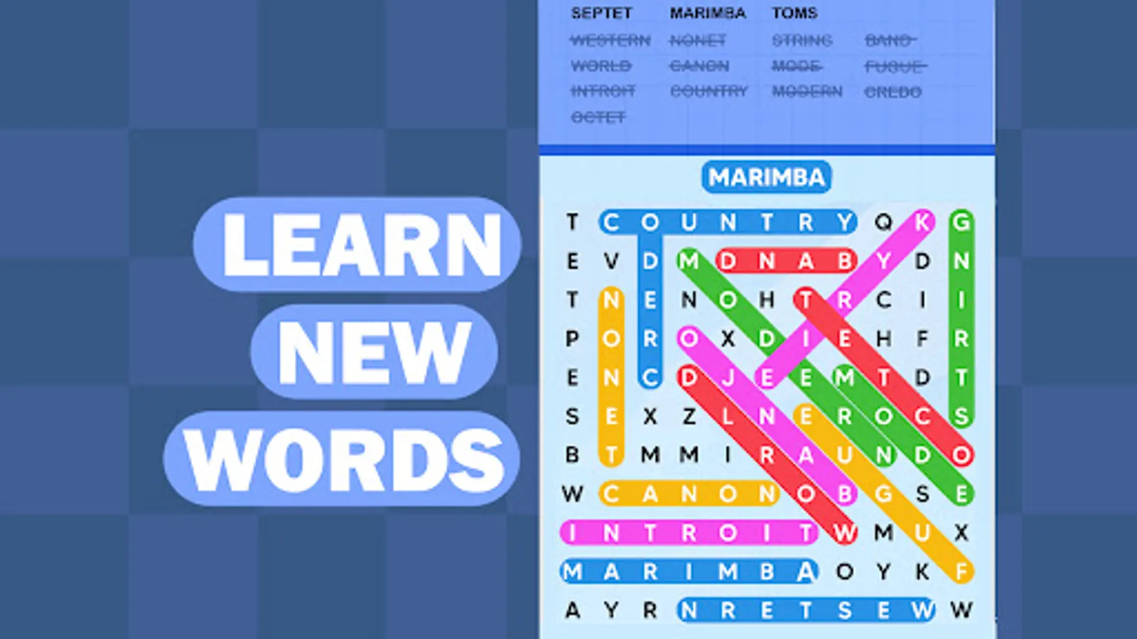 - TRAIN your brain by searching words in many different grids.