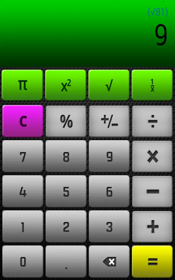 Scroll the first line of buttons for more functions like Square root, square of n, one by n functions.