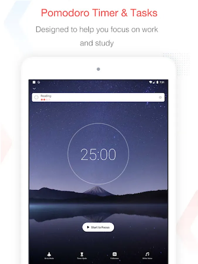 Users have been focused on our app for 200 million hours, join us and we help you to be focused and increase your productivity, reduce procrastination and anxiety.