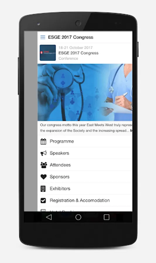 By the ESGE2017 app, you will be able to reach the congress scientific program, general information about the congress, meeting floor plans and plan your agenda accordingly.
