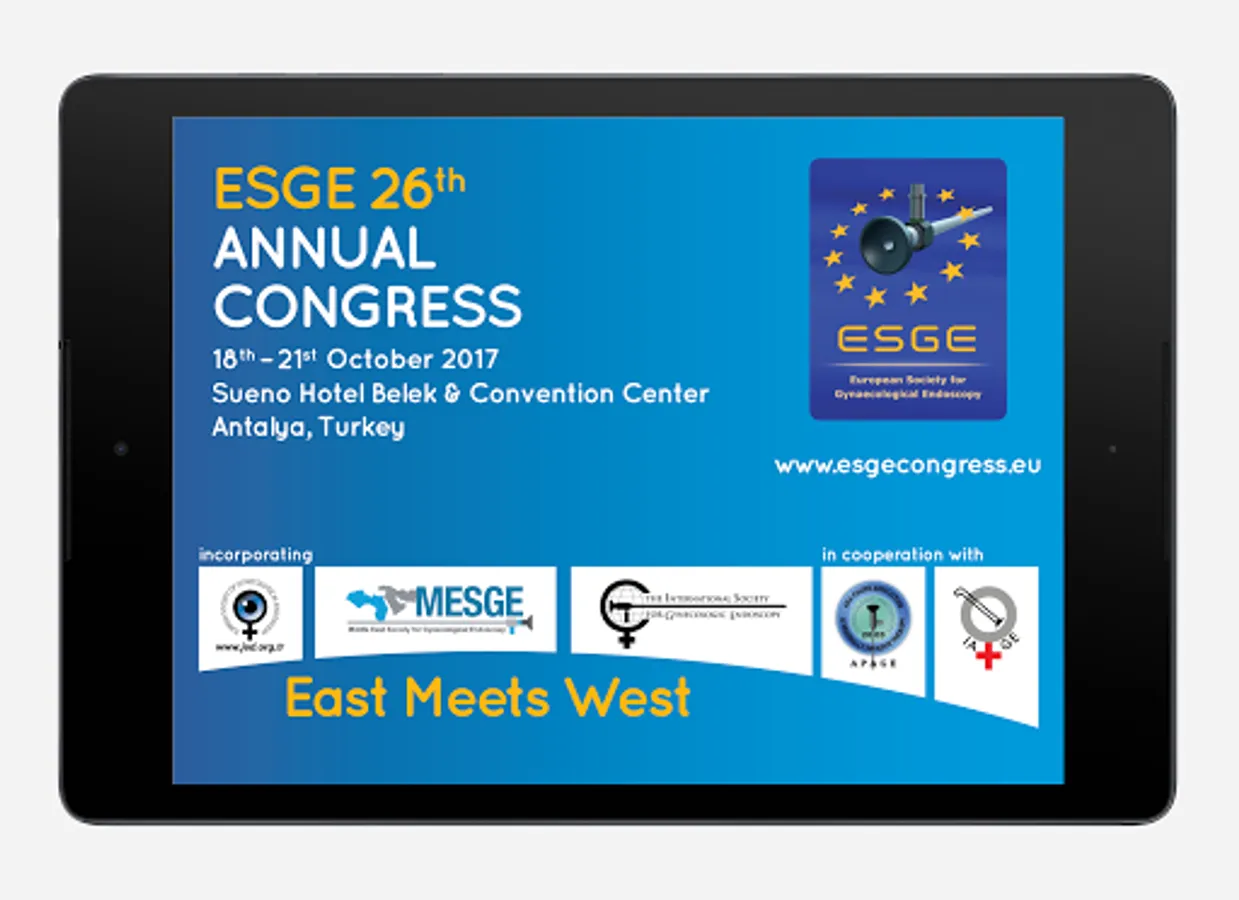26th ESGE Annual Congress will take place in Antalya, Turkey from 18th - 21st October 2017. Our congress motto this year 'East Meets West' truly represents the expansion of the Society and the increasing spread of the ESGE philosophy throughout the world. This year, the congress will be incorporating the Annual Meetings of the Turkish Society for Gynecological Endoscopy (TSGE), the Middle East Society for Gynecological Endoscopy (MESGE) and the International Society for Gynecological Endoscopy (ISGE) and will also take place in cooperation with the Asia-Pacific Association for Gynecologic Endoscopy (APAGE), and the Indian Association of Gynaecological Endoscopists (IAGE). With such an international line-up contributing, this congress promises a comprehensive scientific programme, bringing together the best of East and West.