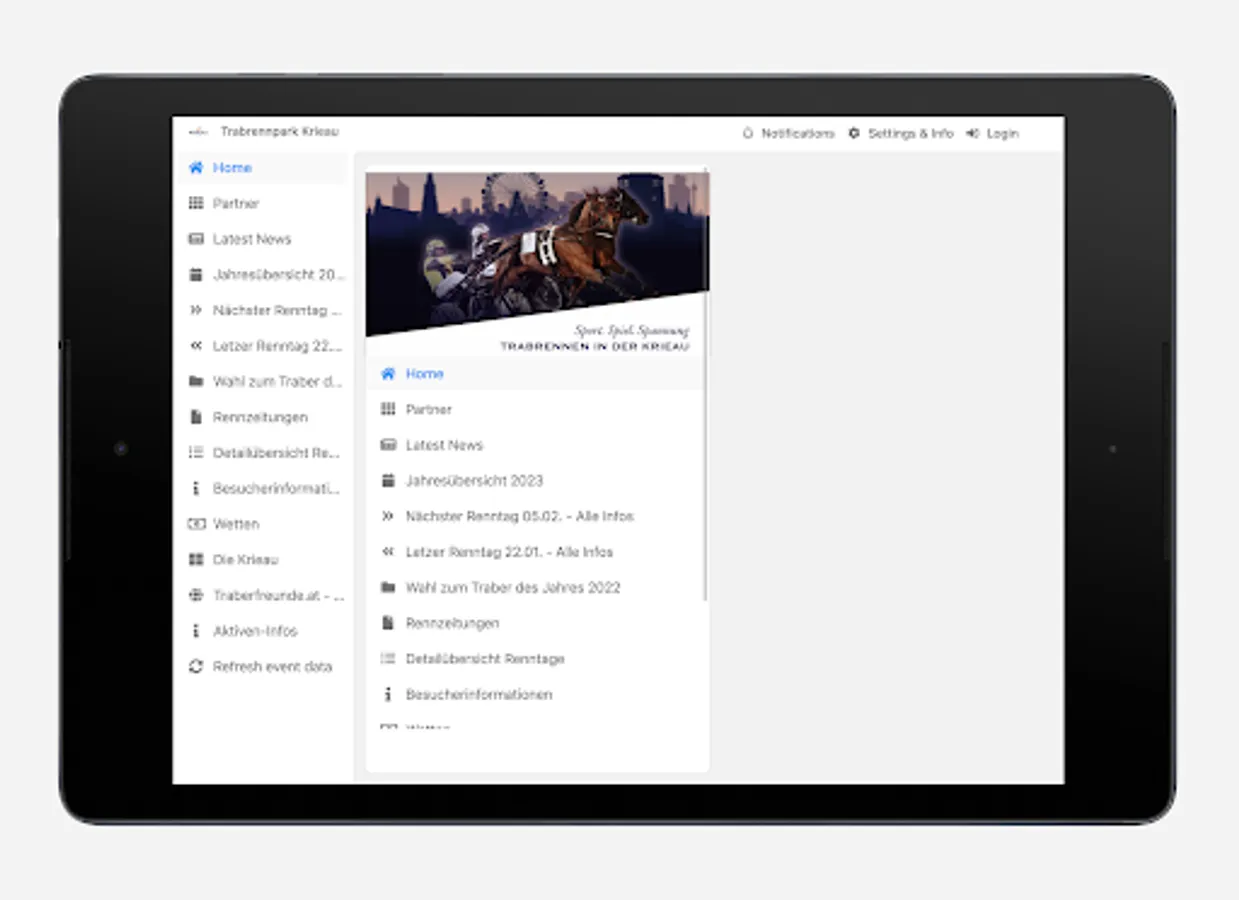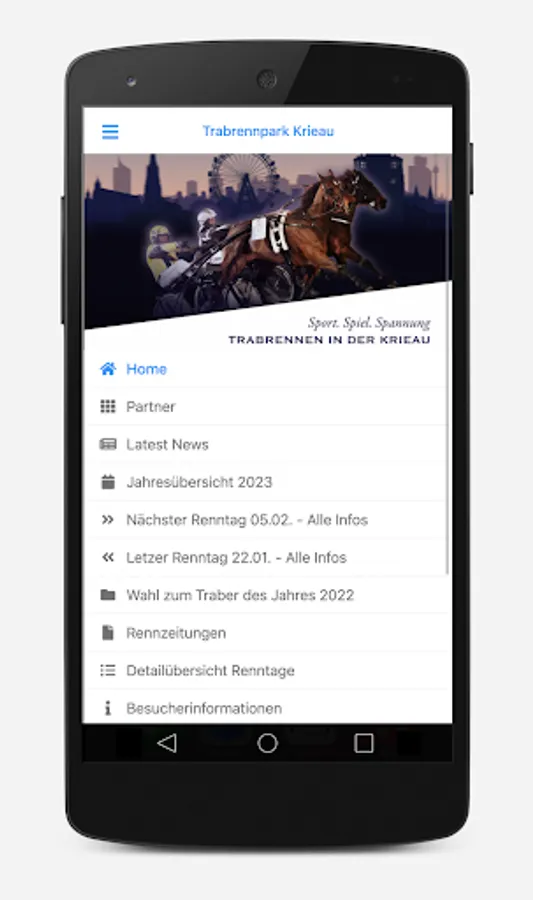 Experience the harness racing at the Vienna Krieau - a unique combination of sports, games and excitement. With the app you get all the information.