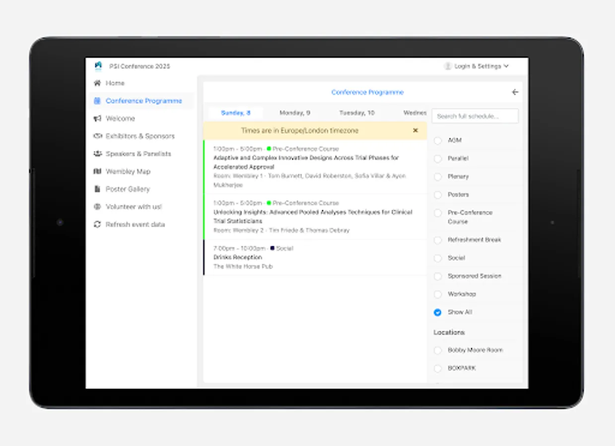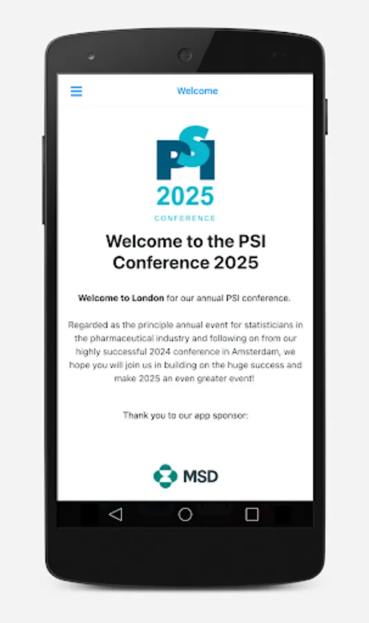 Welcome to the official app for the PSI Annual Conference 2025! Join statisticians, data scientists and industry leaders for an engaging and informative event. The PSI Conference 2025 app is your go-to companion for navigating the conference with ease.