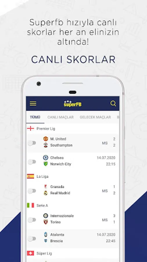 With superFB - Sports News & Live Scores application, you can easily reach everything about your team.