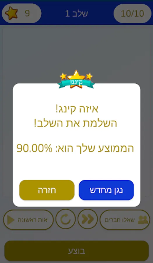 You need to correctly answer 7 questions out of 10 to go to the next step.