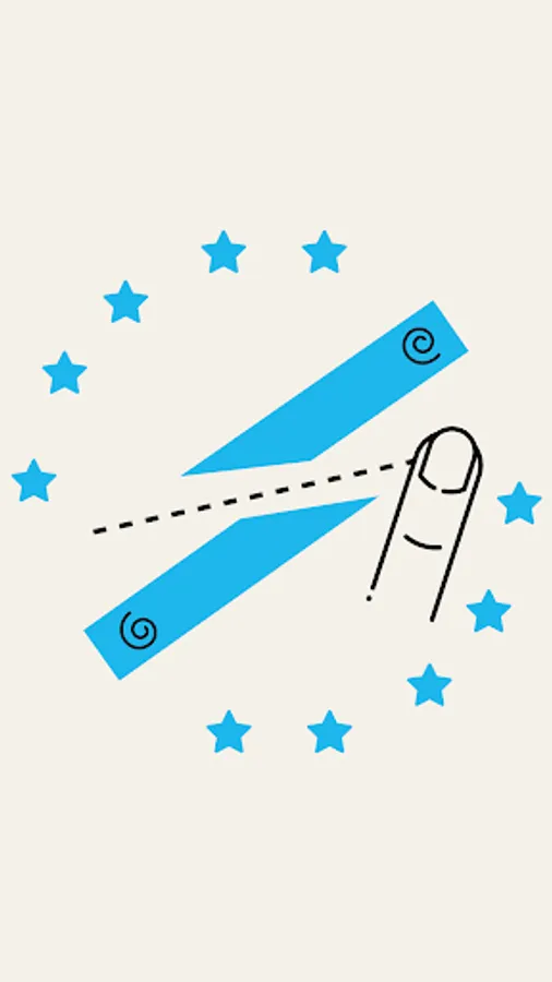 Drawing straight lines, slash to cut the shape and collect all stars to become a winner.