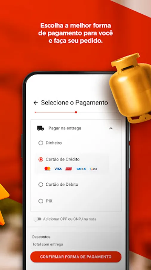 2 – Select the number of cylinders, see the value¹ of the gas, choose the payment method² and click Order.