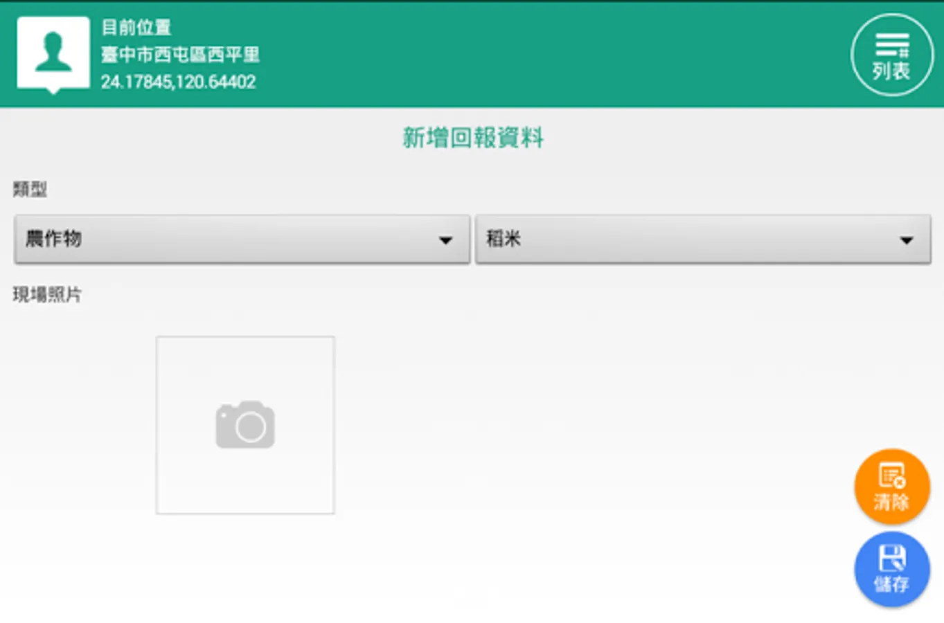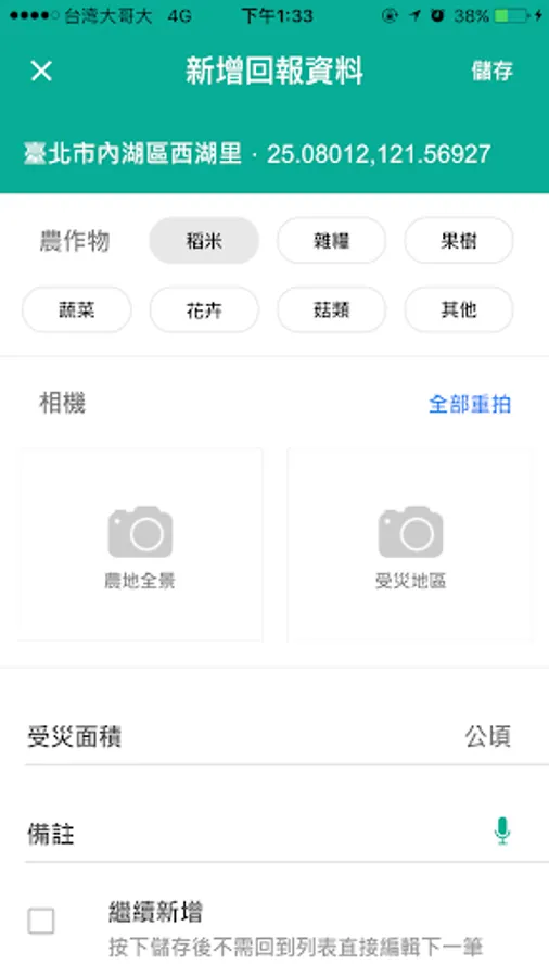 The main function is to allow farmers or the public to immediately send back photos of local disasters after natural disasters (referring to disasters caused by typhoons, foehn, tornadoes, heavy rains, hailstorms, cold snaps, droughts or earthquakes). The main purpose of photos In order to assist the research unit (agricultural laboratory) to cooperate with post-disaster satellite images to make judgments, the actual relief of agricultural natural disasters still needs to be handled in accordance with the current administrative regulations.