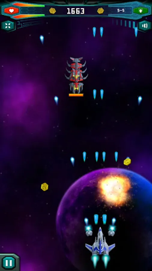 Get ready to prove your agility in this Galaxy Warriors ship, to help defeat the evil spaceships before defeating ours to protect our planet from them.