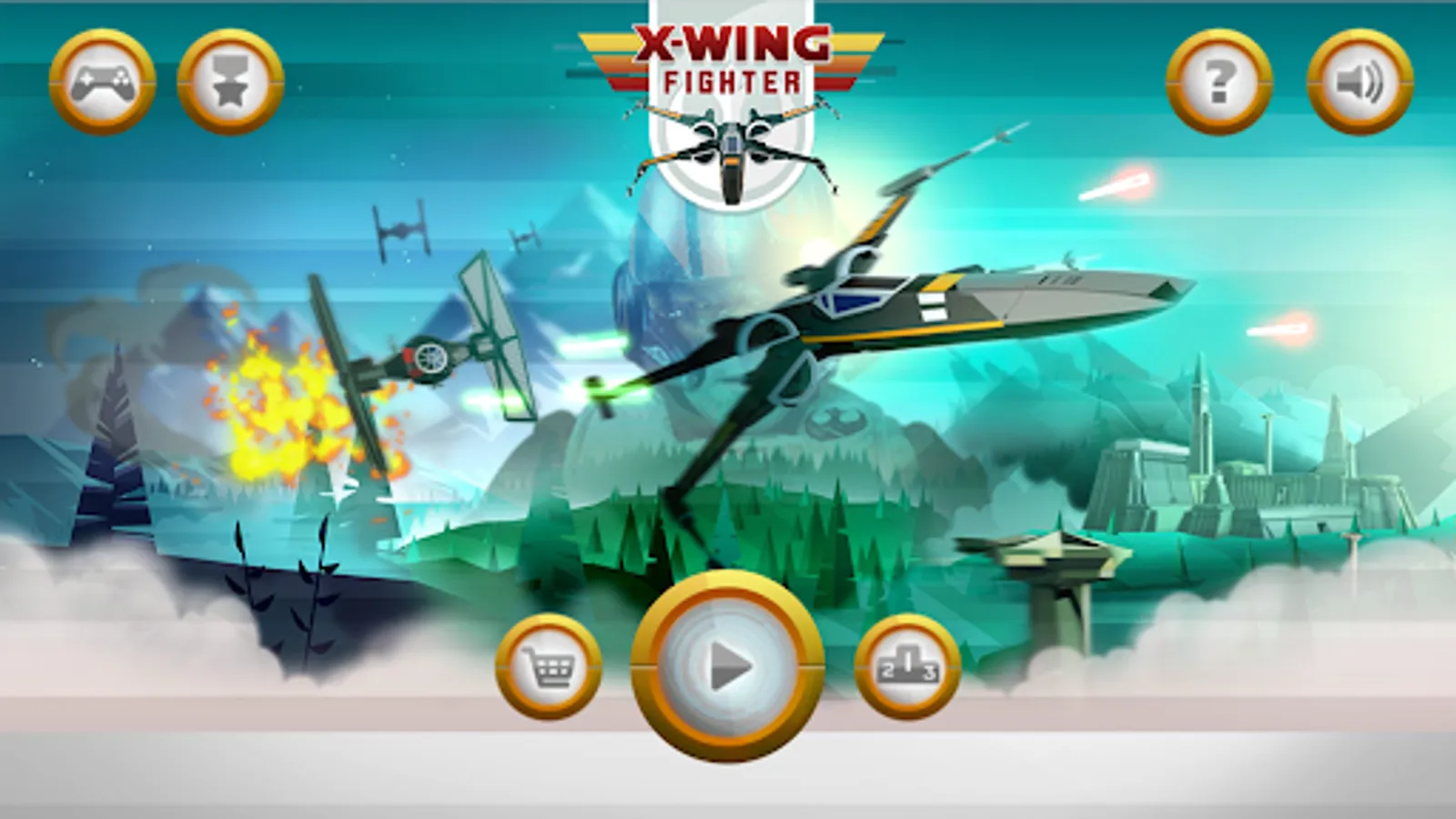 Take to the battlefield in the clouds with the X-Wing Fighter to fight off invading enemy ships in a game that's as exciting as it is thrilling and fun.