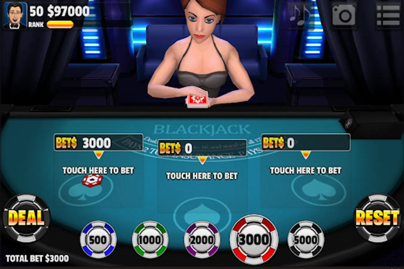 We bring you unlimited fun with unlimited chips. No more waiting hours to get more chips to continue your Blackjack adventure! When you run out of chips you can just start a new game! Right then! No waiting! We have included two modes of play to get the party started. Practice Mode gives you a bunch of chips and lets you play away without the worry of losing everything. Standard Mode puts the game into a career style play where you earn XP and build up your bank account.