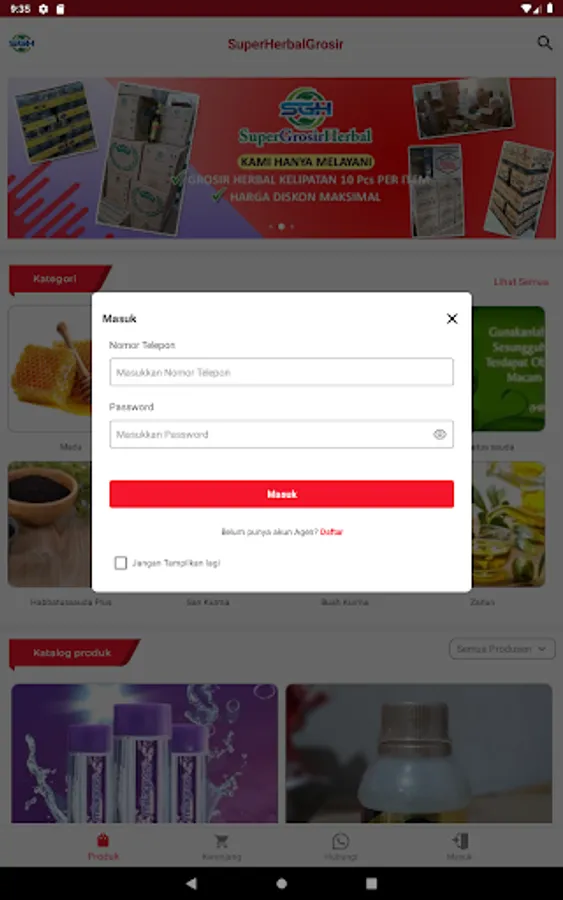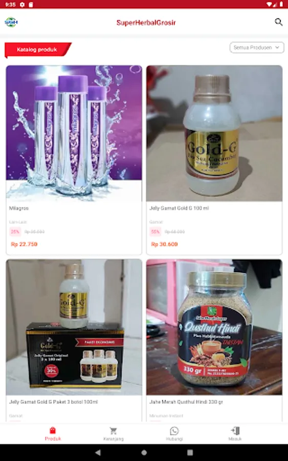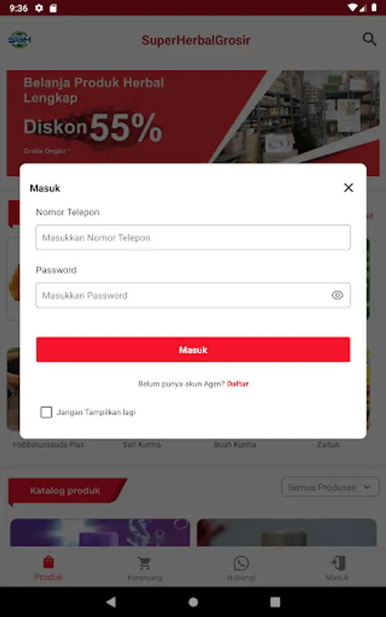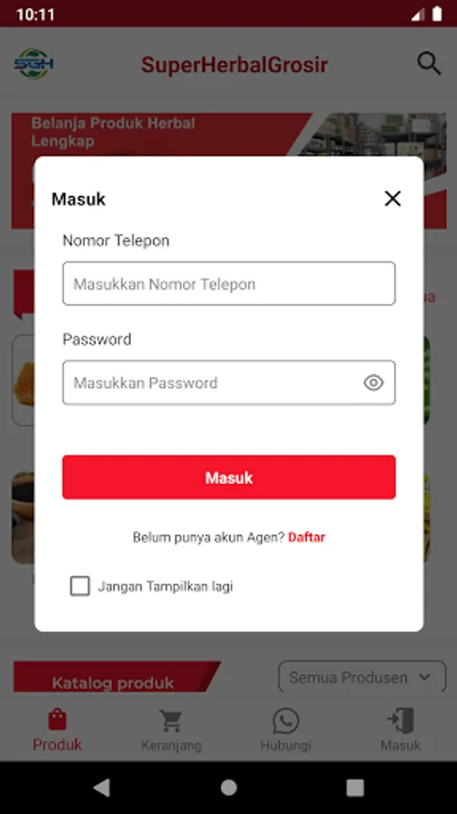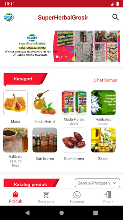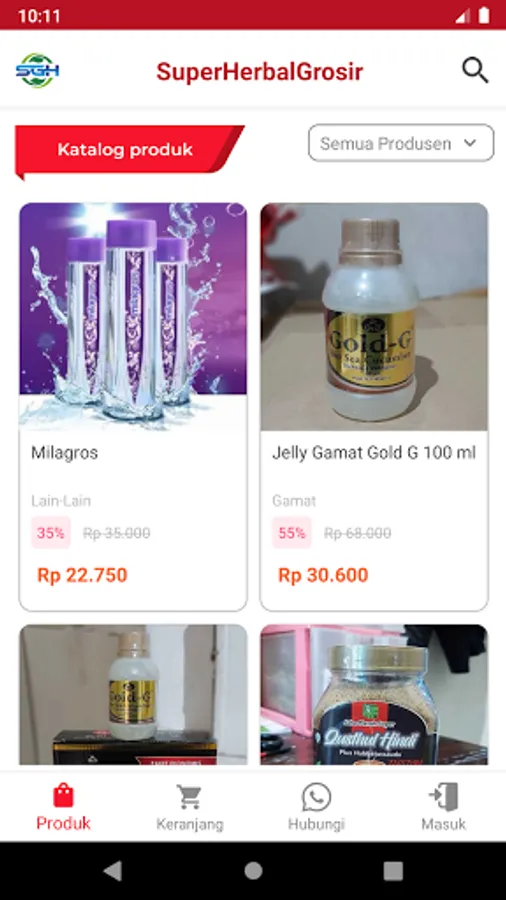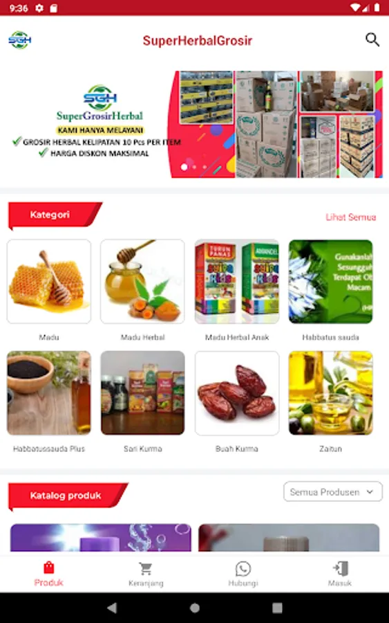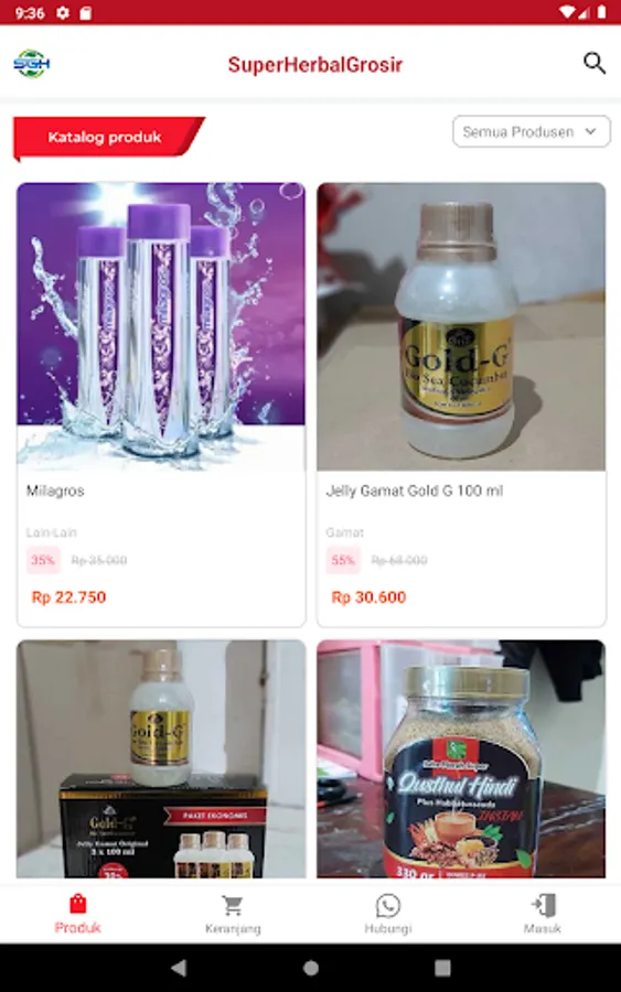 Aplikasi Katalog Distributor Super Grosir Herbal (SGH) lengkap dengan informasi harga dan diskonnya.