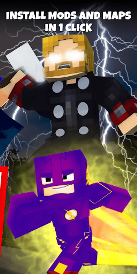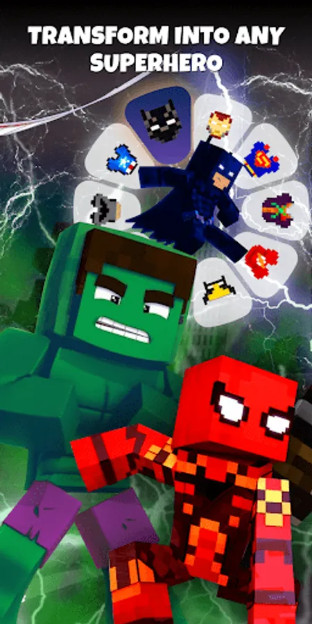 Superhero Mods for Minecraft is an application with original mods and skins that will allow players to play the roles of the most famous superheroes and acquire their powerful abilities. Play deadly battles at full speed to save the pixel universe. Choose your favorite costume and feel the incredible power.