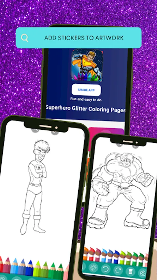 Superhero Coloring Pages have a simple interface, so it's really easy to use. Superhero coloring has never been easier, it can be used anywhere and anytime. Does not require internet connection.