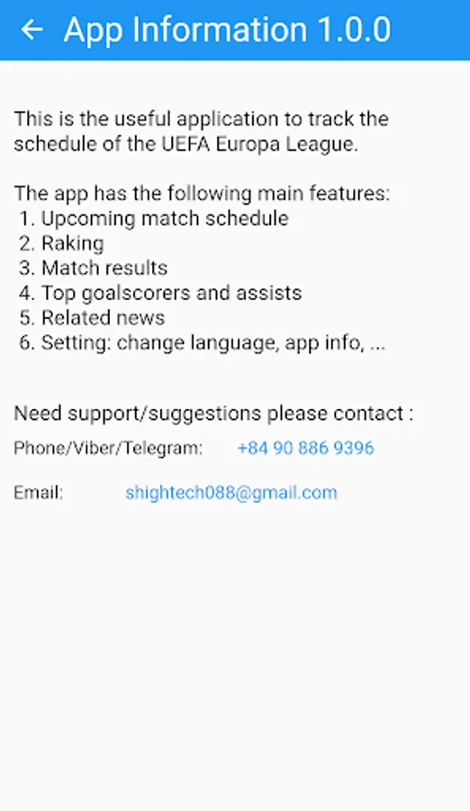 6. Setting: change language, app info