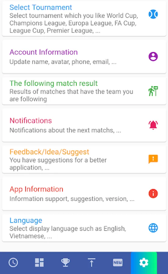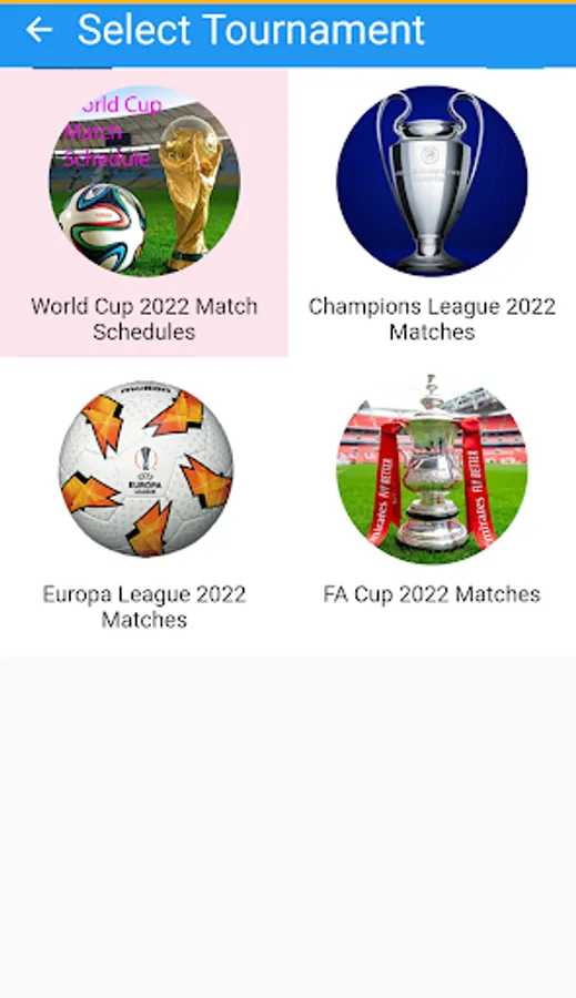 This is the useful application to track the schedule of the World Cup, Champions League, Europa League, FA Cup, League Cup, Premier League, etc