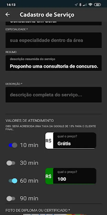 Professionals must register with their service, a PayPal account to receive the values of the services.