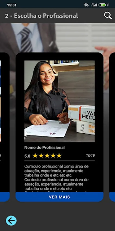 3) a list of professionals will appear in the form of cards so that the user can