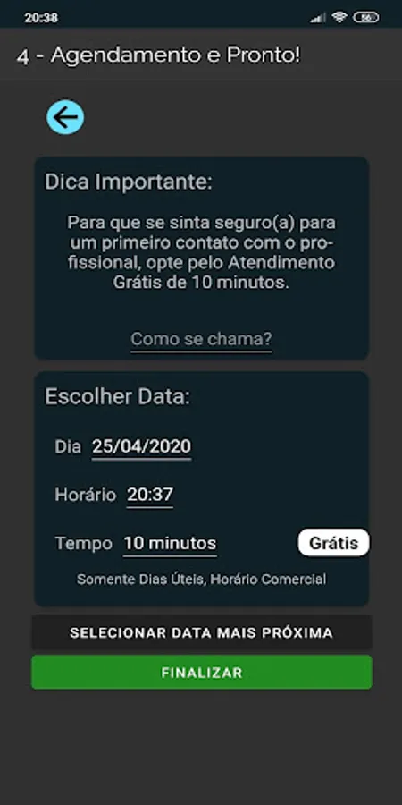 4) if you want to attend with the chosen professional, select the "book now" button and you will be directed to the smart scheduling page;