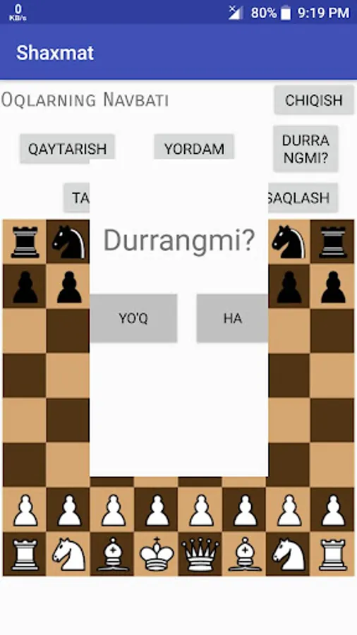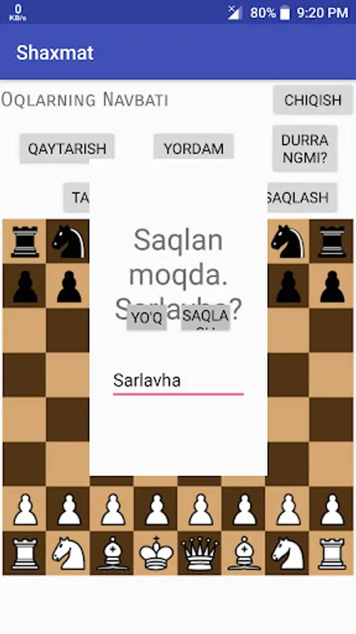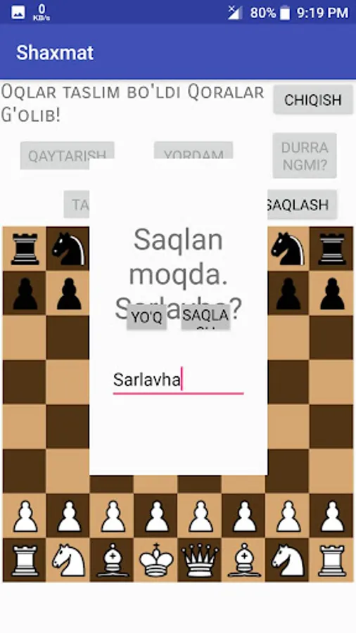 Android qurilmalar uchun O'zbek tilidagi birinchi Shaxmat o'yini!