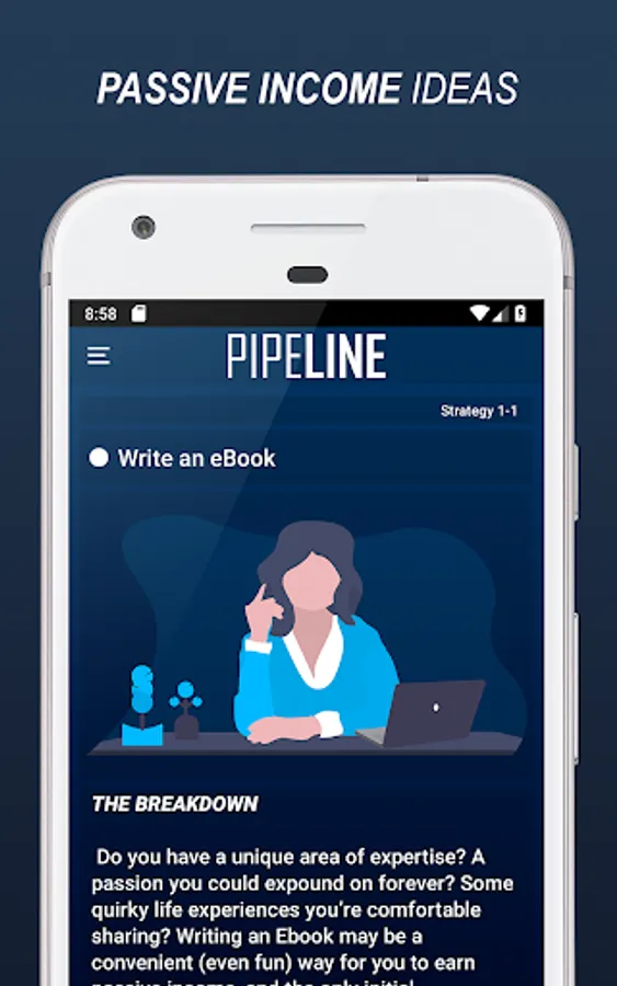 Pipeline is a new and innovative app that breaks down passive income ideas from low to high startup costs. Within each category, we break down each idea, detail how anyone can get started, and provide you with supplemental information to jump start your ventures!
