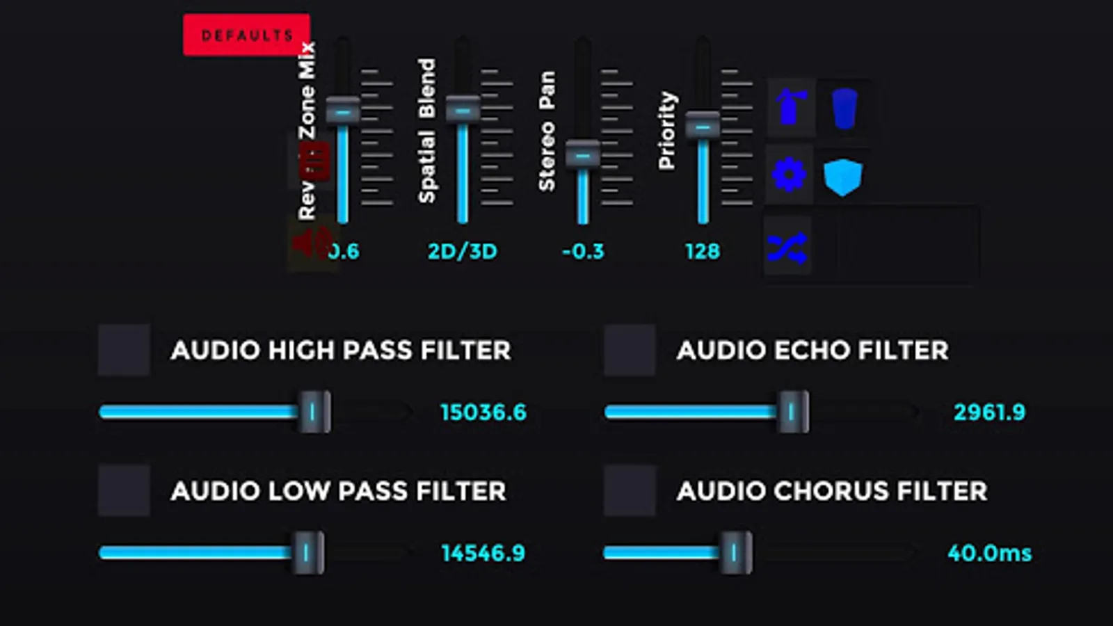 Stereo Pan : Sets the position in the stereo field of 2D sounds.