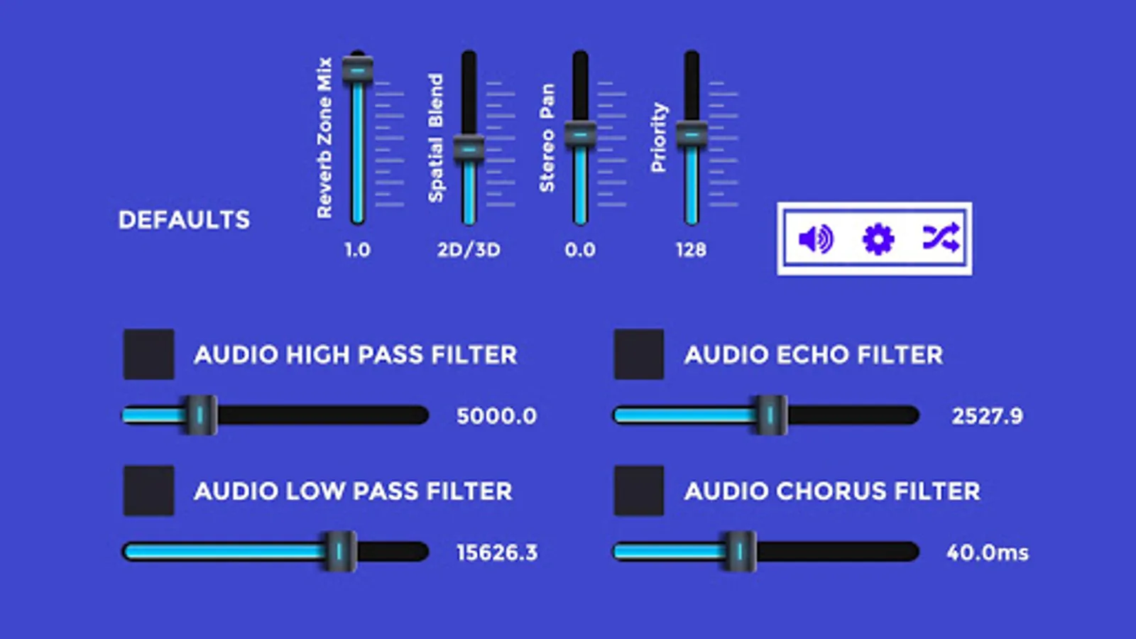 Stereo Pan : Sets the position in the stereo field of 2D sounds.