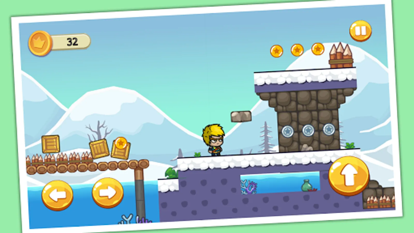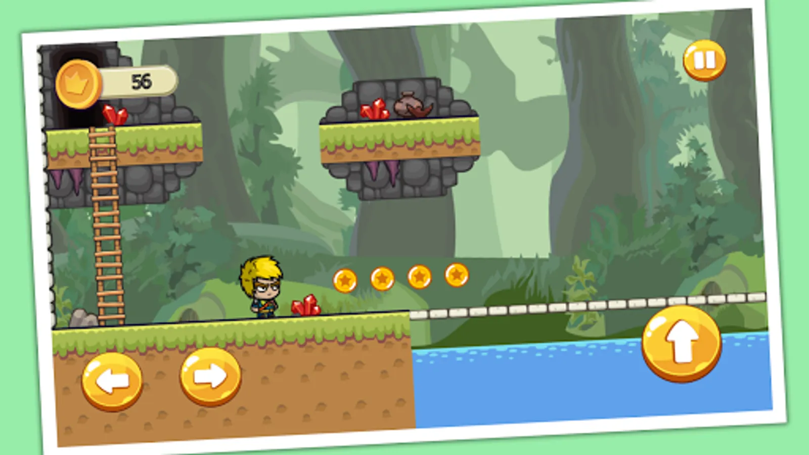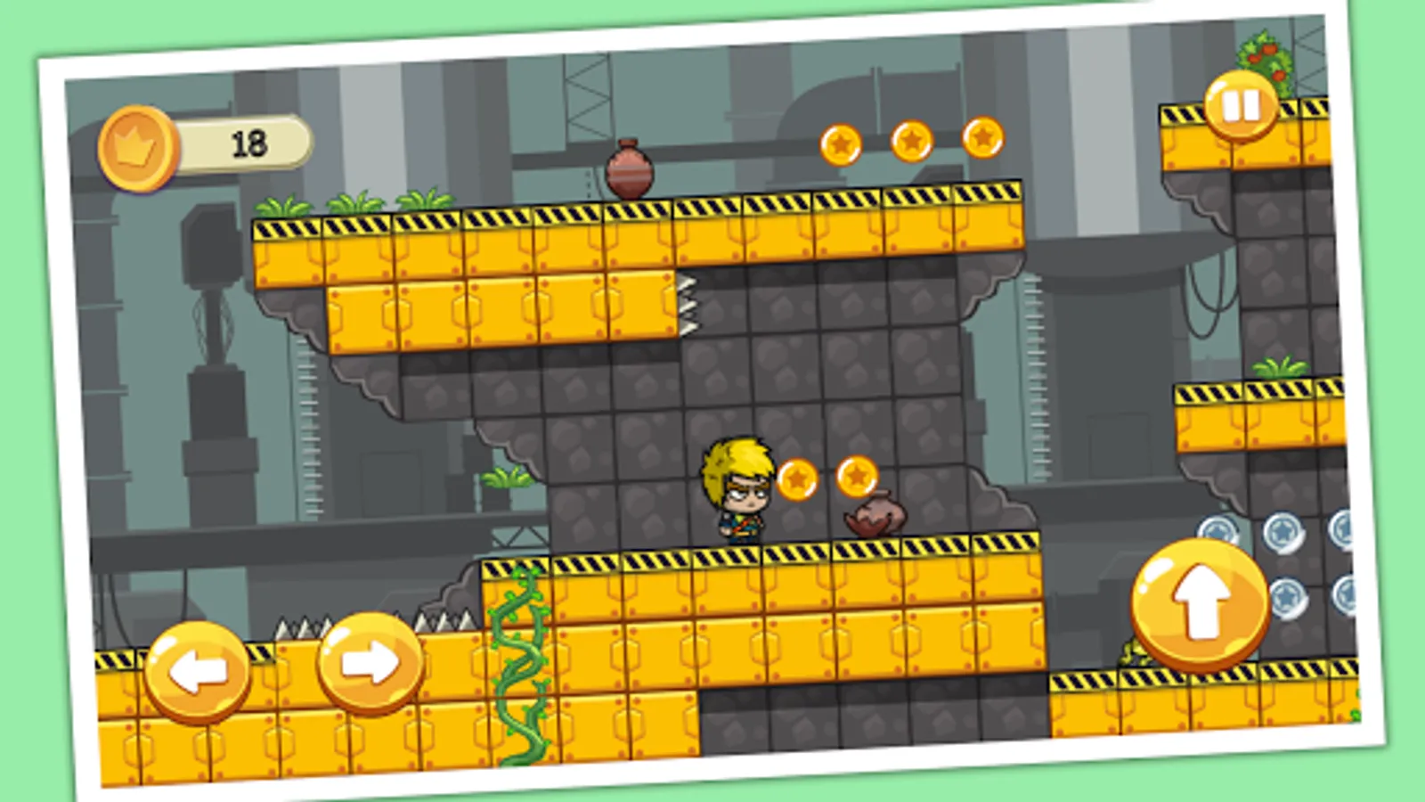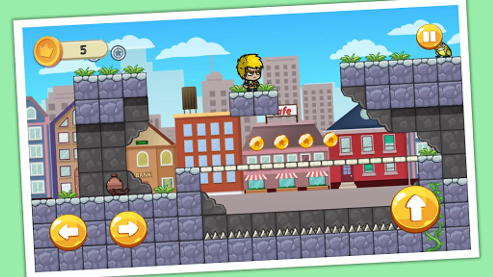 - Run, Jump, avoid enemies and obstacles you meet in your trip, and collect coins as you can.