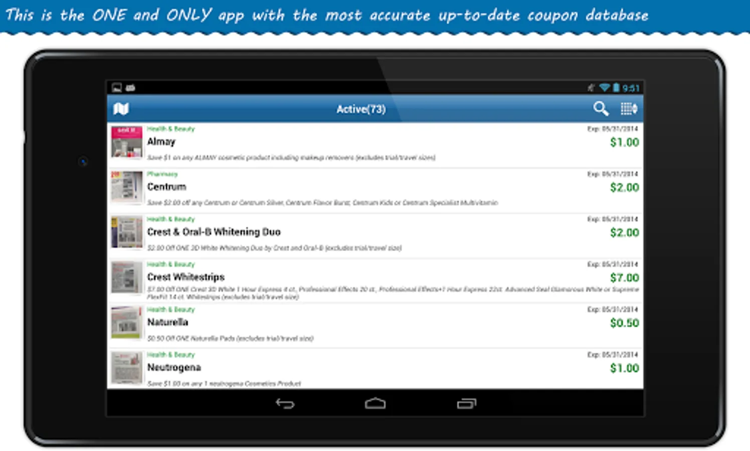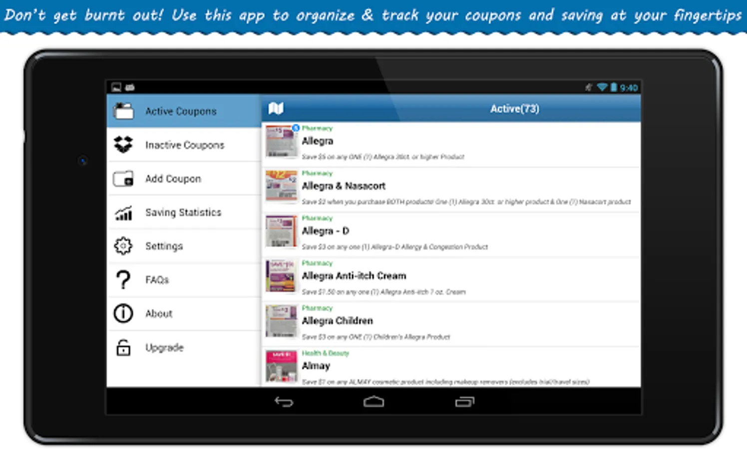 (Please Note: This coupon organizer app helps you to better organize/manage your coupons, but you STILL have to carry your physical coupons and redeem them at local store.)