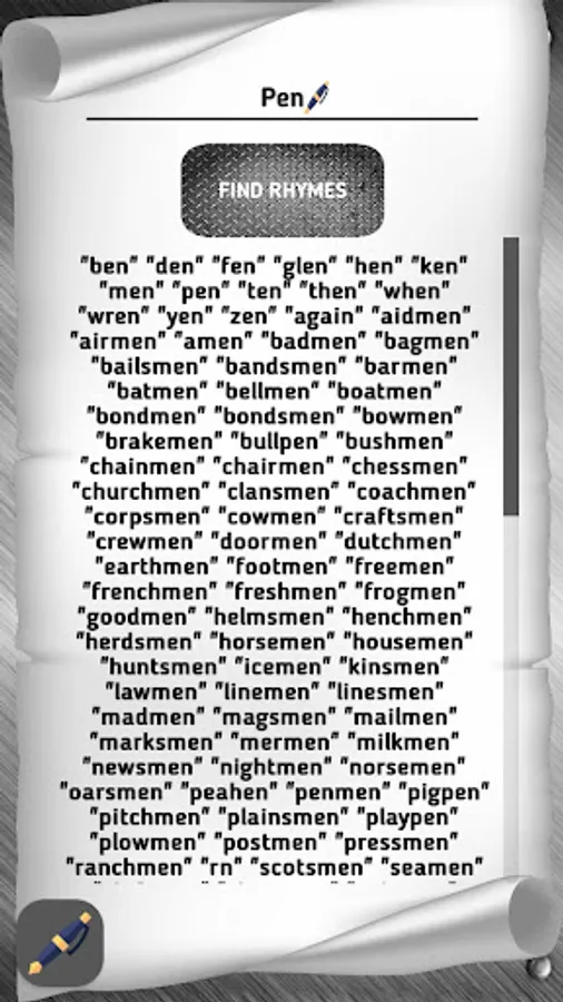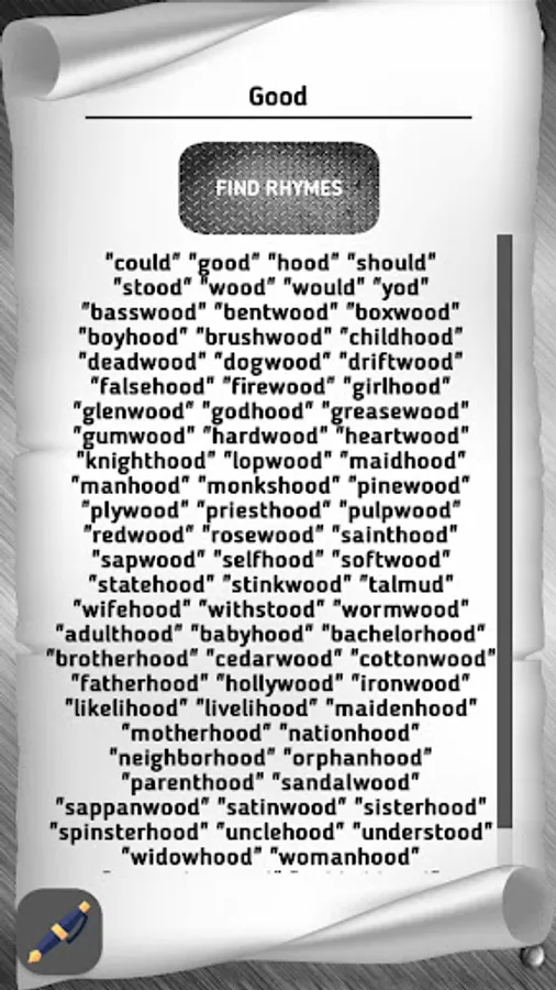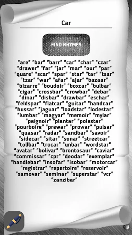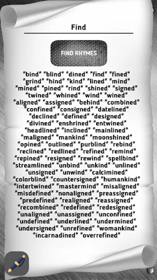 In the application, you have the ability to find rhymes for a certain word and change the stress in the word. With this application you will find all the rhymes for your creativity.