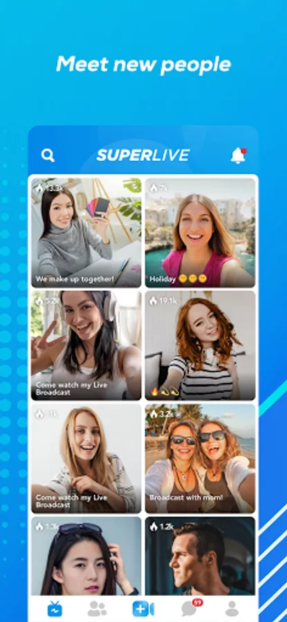 You can broadcast LIVE and show your talents to all over the world. You can talk to your friends, get presents and have incredible fun on SuperLive. Share your special moments live with your friends all around the world and expand your community.