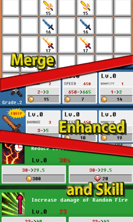 Build various swords to defeat various monsters and earn coins.