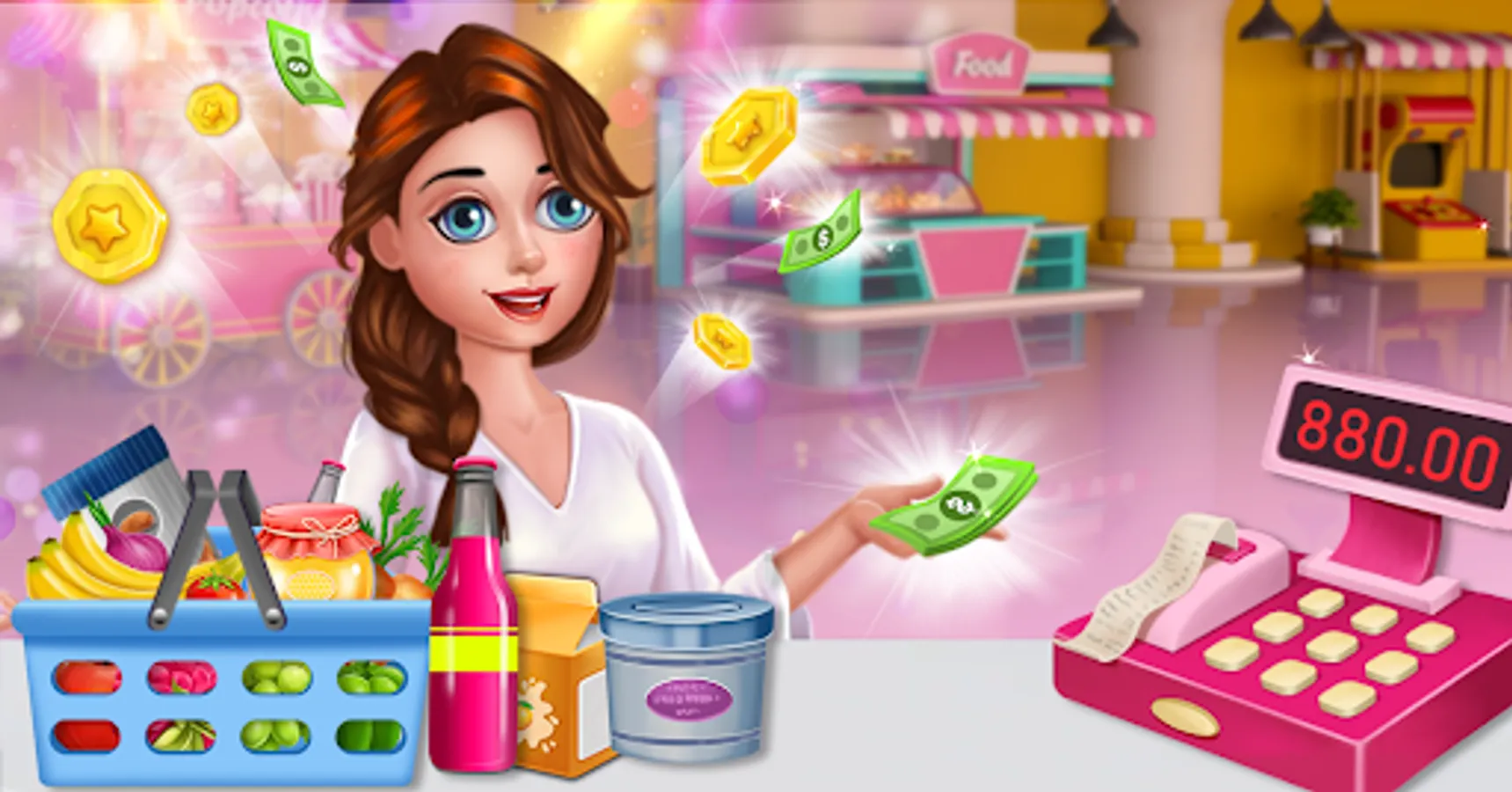 Supermarket simulator is fun supermarket Cashier management game.