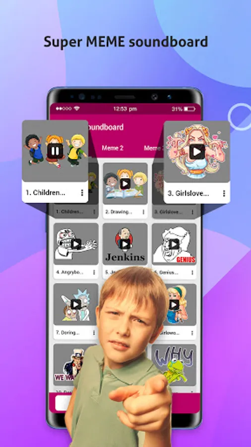 Super Meme Soundboard app gives a collection of popular and funny Dank meme soundboard. App gives you 120+ the latest Vine Soundboard for your phone and set Ringtones, Alarm tone OR SMS tone.