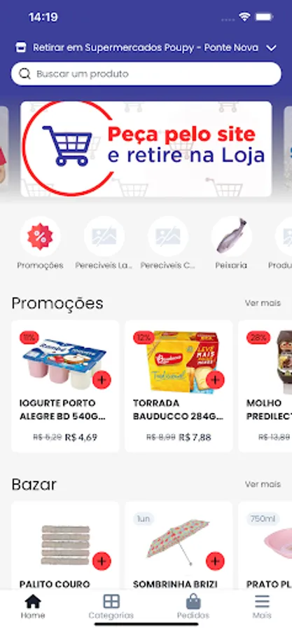 Now the Poupy Supermarket customer can make their purchases by cell phone at any time and schedule the delivery of goods.