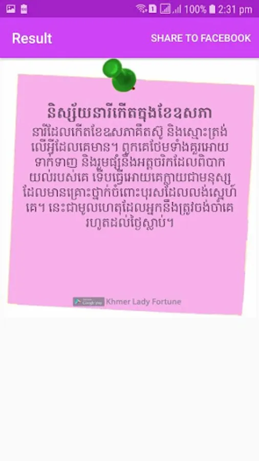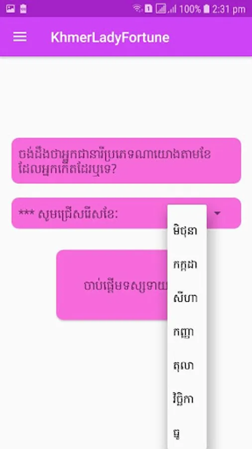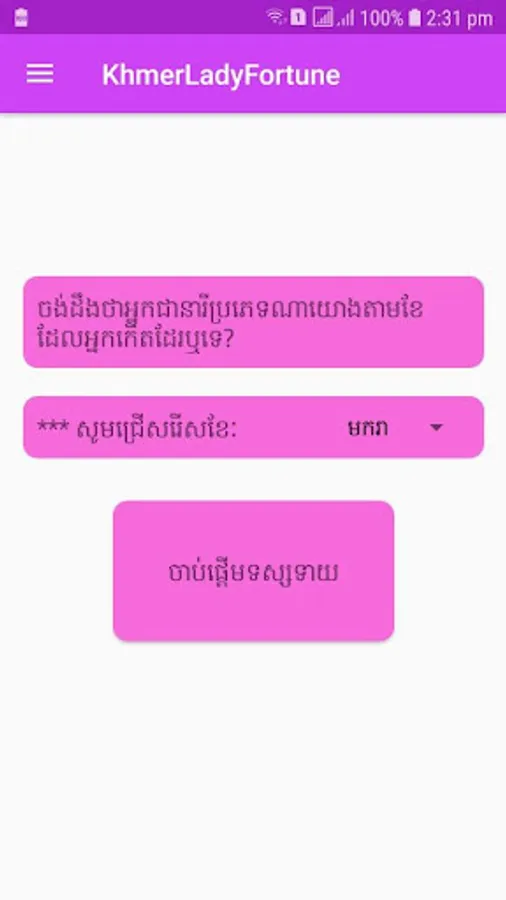 Khmer Lady Fortune is a mobile app allows users to know their fortune follow their birth month for FREE.