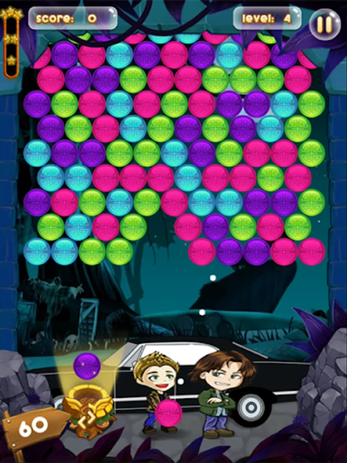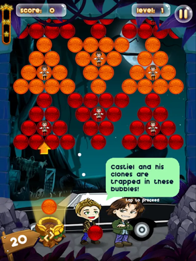 You can help Dean and Sam to rescue Castiel and his clones. Shoot the bubbles and match three or more with same color bubbles to rescue the trapped Castiel.