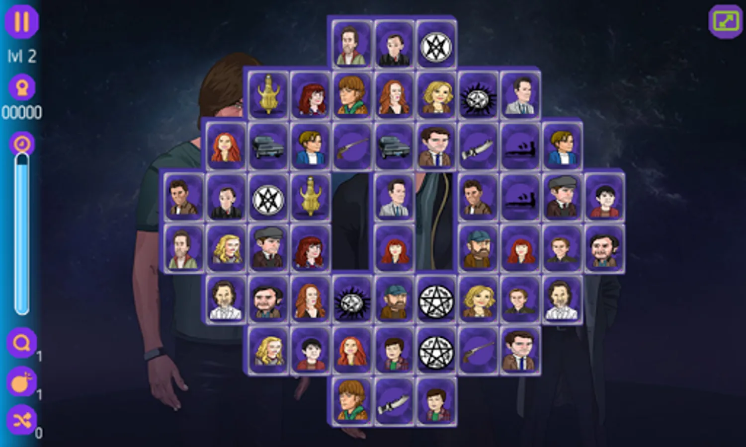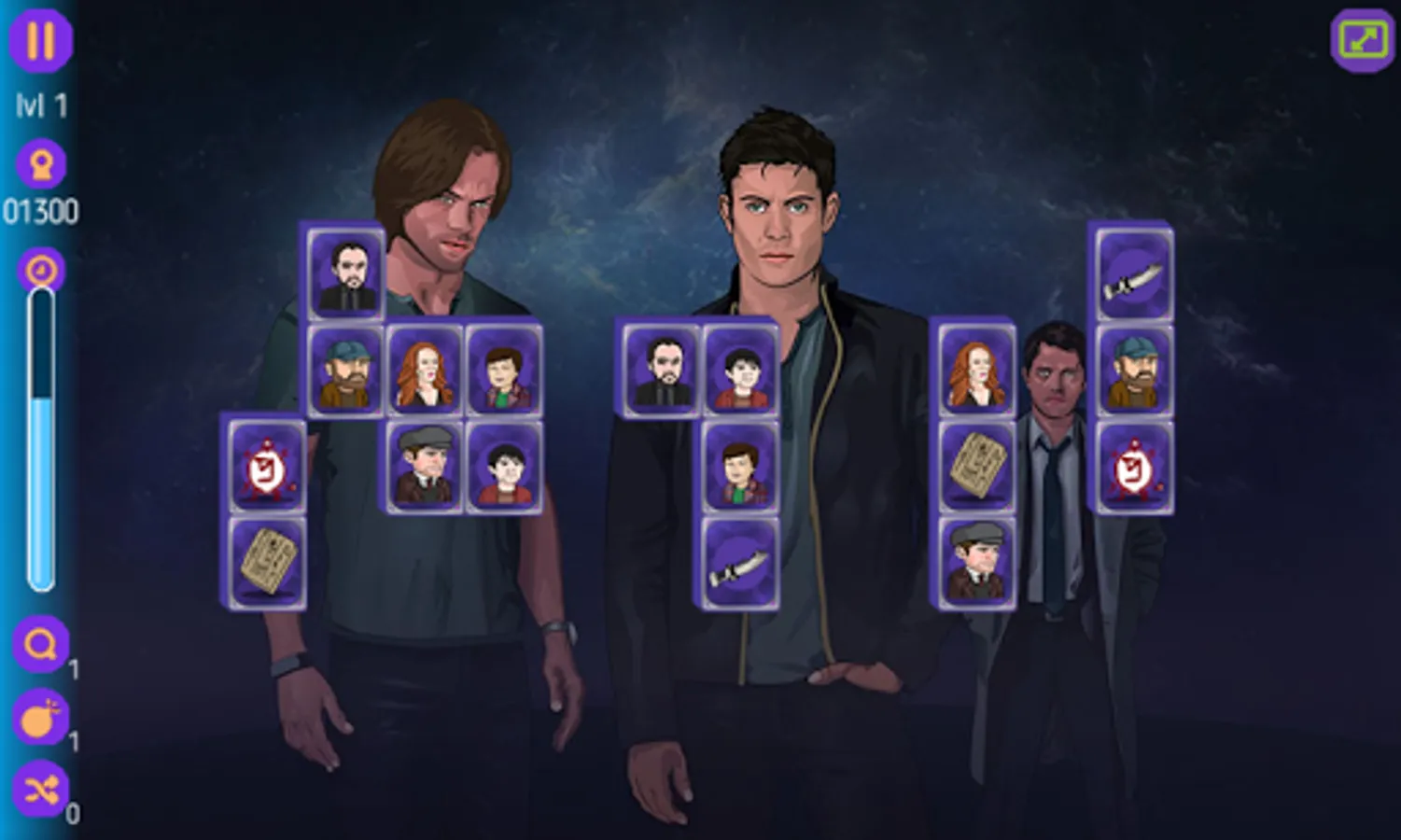 Castiel will accompany you to have Supernatural journey through abandoned city, with full of Supernatural cartoon characters in this classic mahjong game.