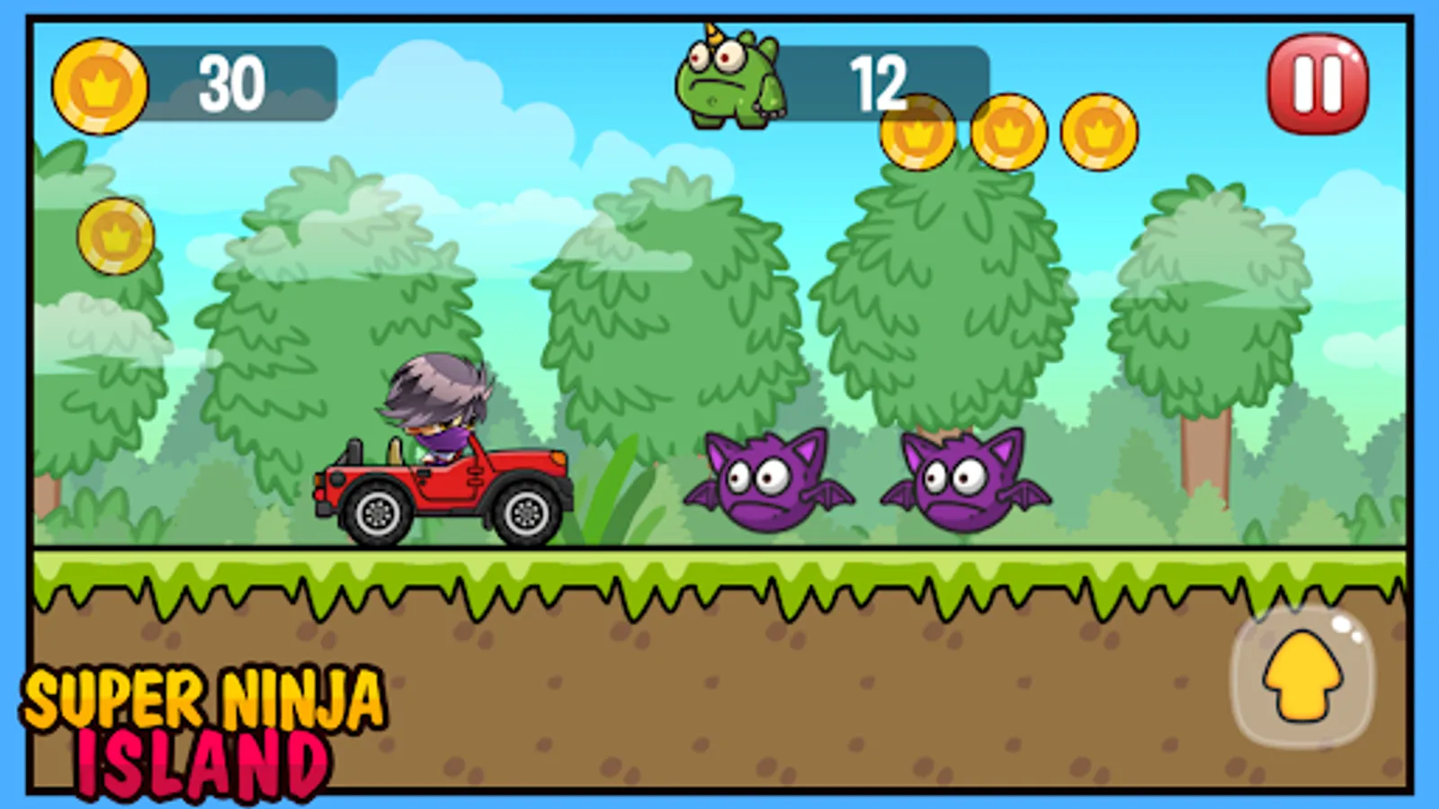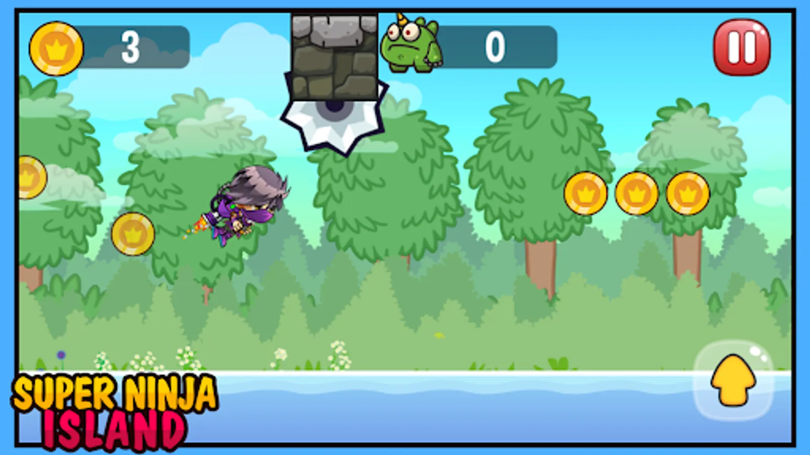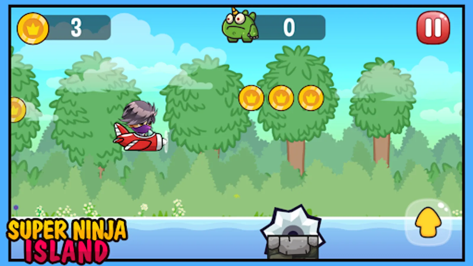 Super Ninja Island Adventure - Play with the Ninjas and Save the Island from the bad monsters, destroy them with the ninja guns and collect all coins , use the gadgets and have the best score.
