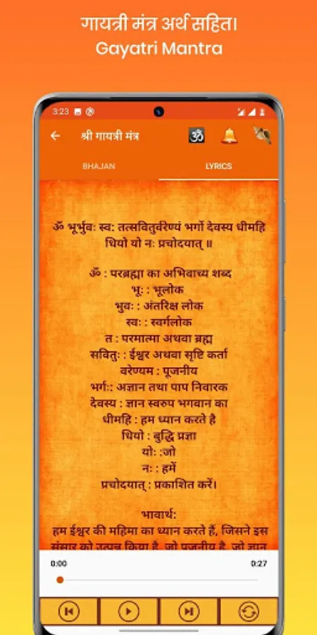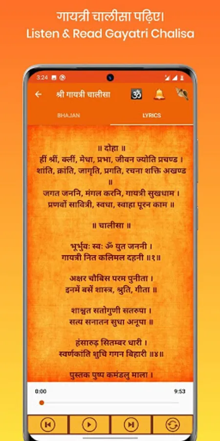 The Gayatri Mantra App is one of the best prayer apps for the Goddess Gayatri Maa. It has famous Aarti, Mantra, Ashtakam, Strotam, Vandana and Chalisa which you can play/pause and repeat.