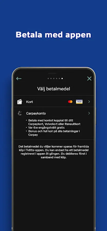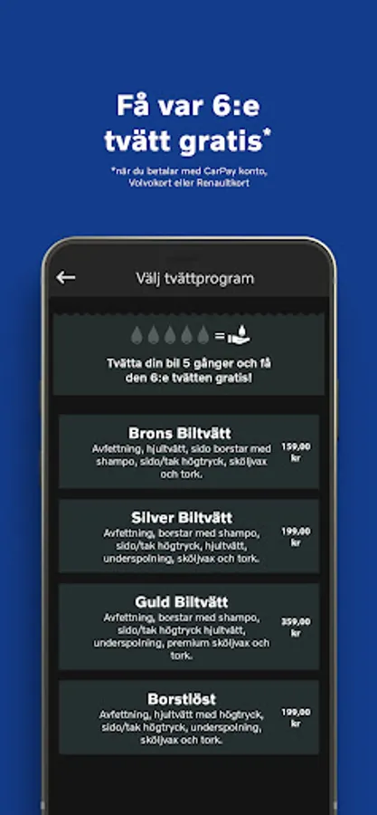 It should pay to wash the car on Wash. If you pay with your CarPay account, Volvo card or Renault card in the app, you get a free wash every 6 times, regardless of which washes you have done before.