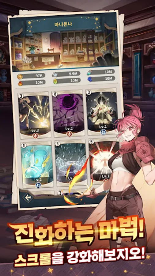 - Magic scrolls that will make you a powerful wizard! Meet various magic scrolls such as Lightning Lance and Maga Hibenkus in 'Manadonna'