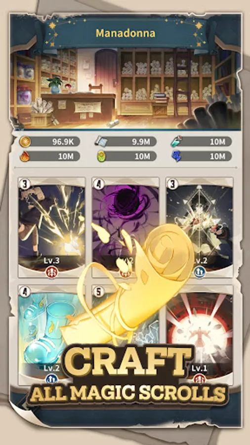 - Stop by the scroll shop ‘Manadonna’, where you can craft and enhance scrolls.