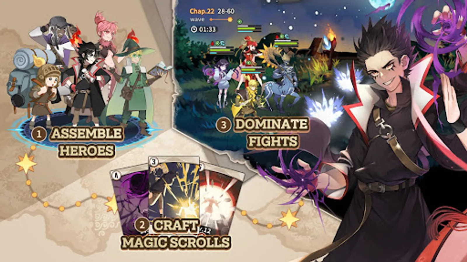 - When the battle situation turns dire, activate magic scrolls! Get the upper hand with some exhilarating special moves!